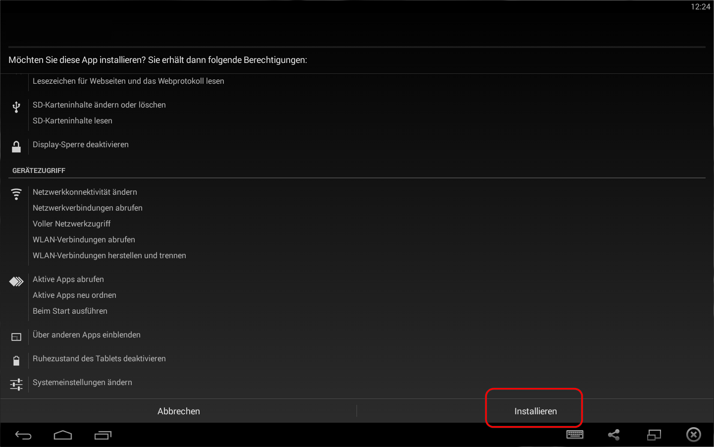 Tippen Sie in dem jetzt geöffneten Installationsfenster nach Durchsicht der weiteren Optionen auf → Installieren um den Installationsvorgang fortzusetzen.