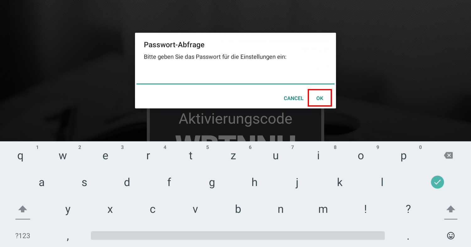 Jetzt sehen Sie dieses Bild auf Ihrem Android-Display, mit dem Ihnen ein individuell generierter Aktivierungs-