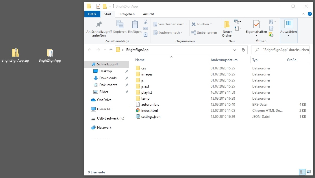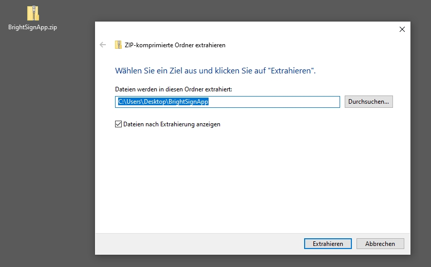 Durch den Download erhalten Sie den Ordner → BrightSignApp.zip.