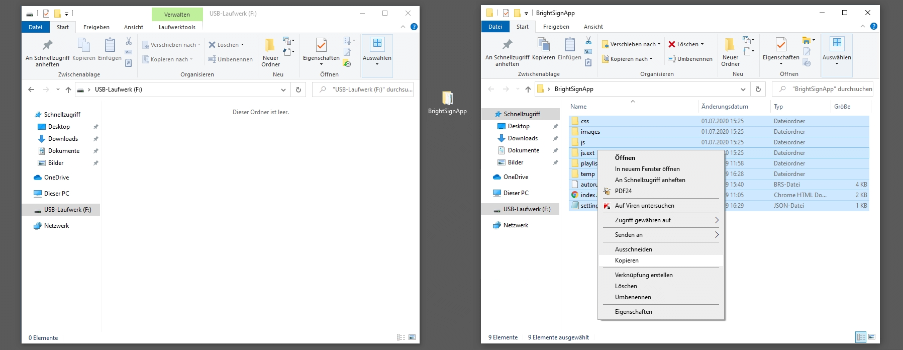 3. Kopieren der App auf Karte des BrightSign Players