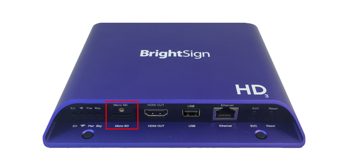 1. Entnehmen Sie nun die microSD Karte aus dem Kartenslot des BrightSign