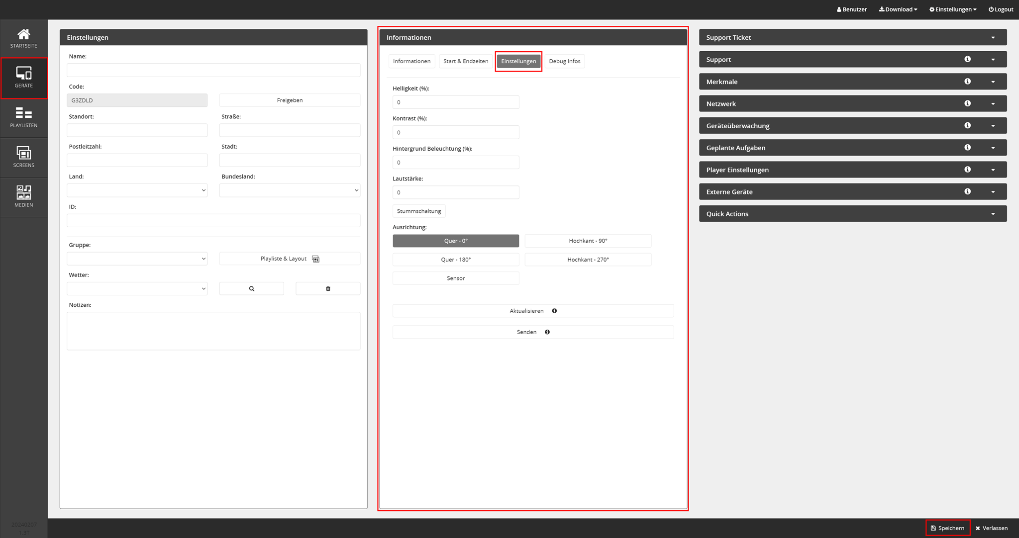 Damit Ihre getätigten Eingaben vom System übernommen werden, klicken Sie bitte vor Verlassen der Geräte-Einstellungen auf → Speichern.