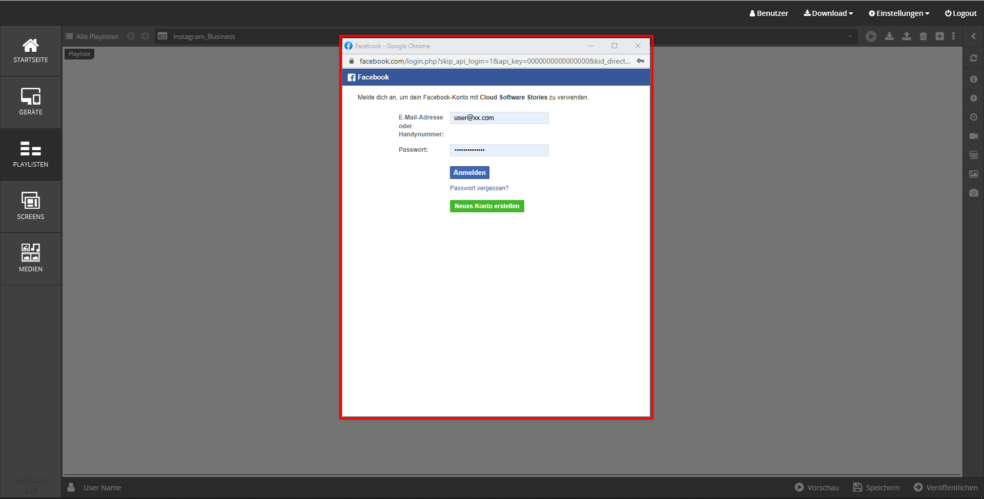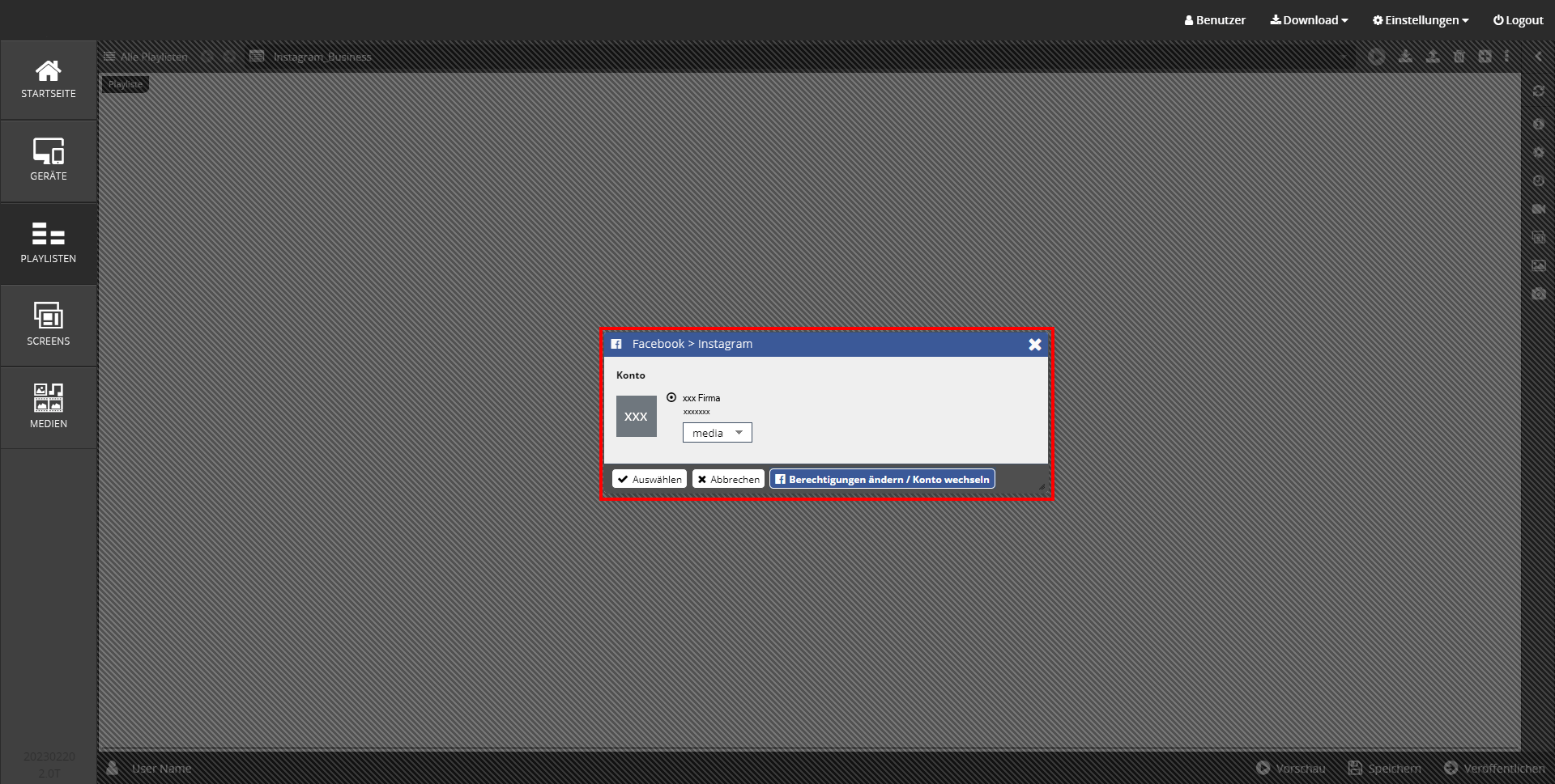 Voraussetzung für die Nutzung von Instagram in Ihrer Cloud Software