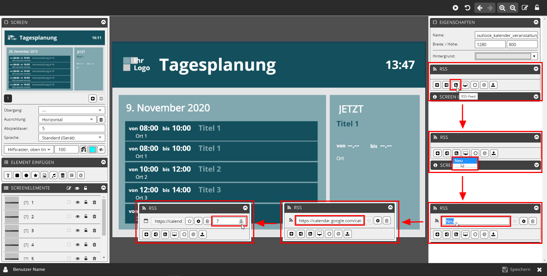 Verknüpfen der Elemente des Templates mit den entsprechenden Kalendereinträgen.