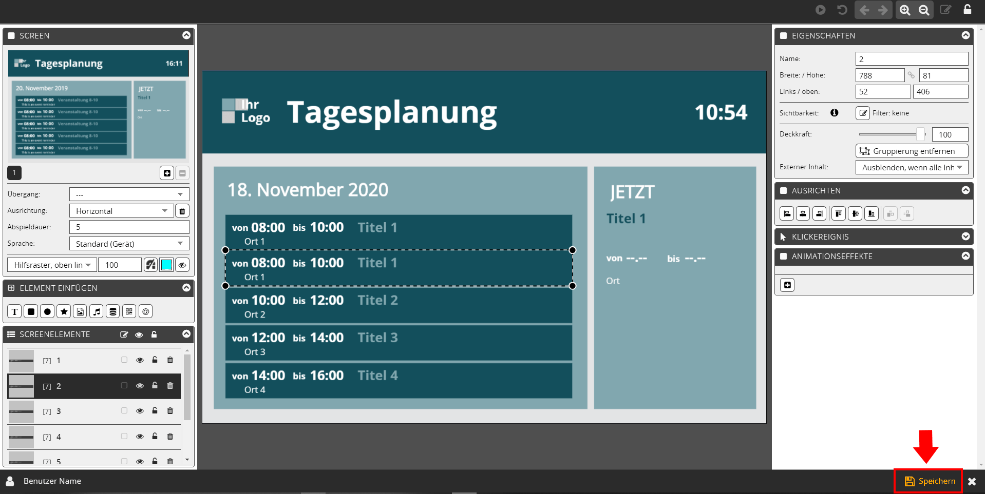 Sobald Sie hier alle Bearbeitungen vorgenommen haben, klicken Sie rechts unten auf die Funktion → Speichern.