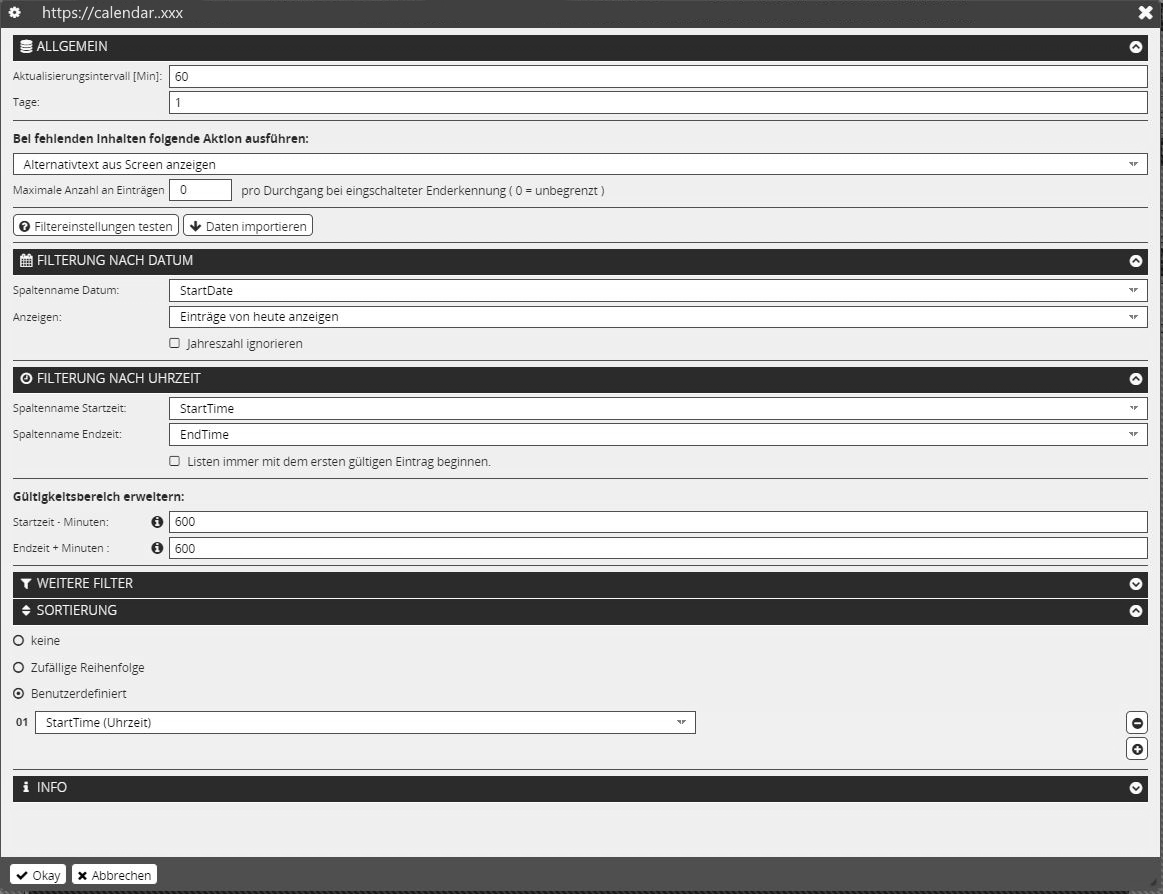 - Öffnen Sie unter → Quelle das Menü und wählen den von Ihnen generierten Kalenderlink aus.