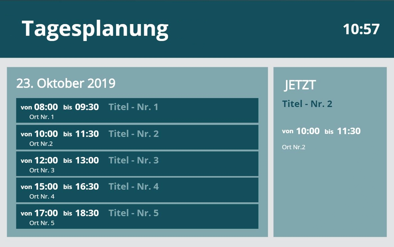 Sie haben in Ihrer Tagesplanung 5 verschiedene Ereignisse, die in Ihrem Template dargestellt werden sollen.