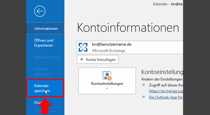Den gewünschten Outlook Kalender in Outlook sichern