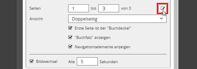 - Erstellen Sie eine PageFlip Datei und geben Sie den gewünschten Seitenbereich in den → Einstellungen unter → Seiten ein.