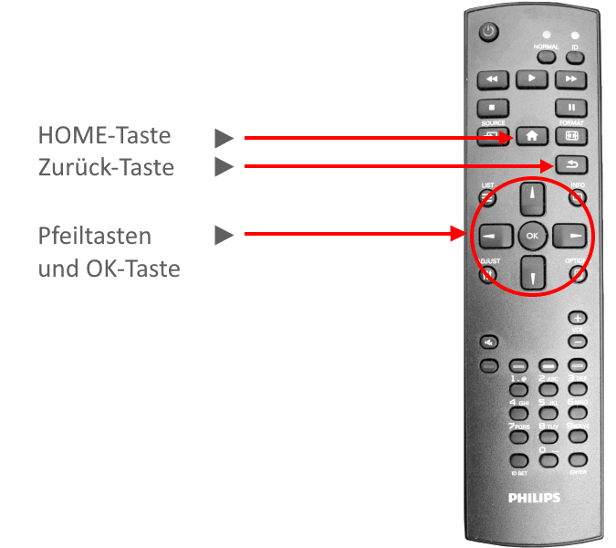 - Nehmen Sie für das Einrichten des Philips Gerätes die Fernbedienung.