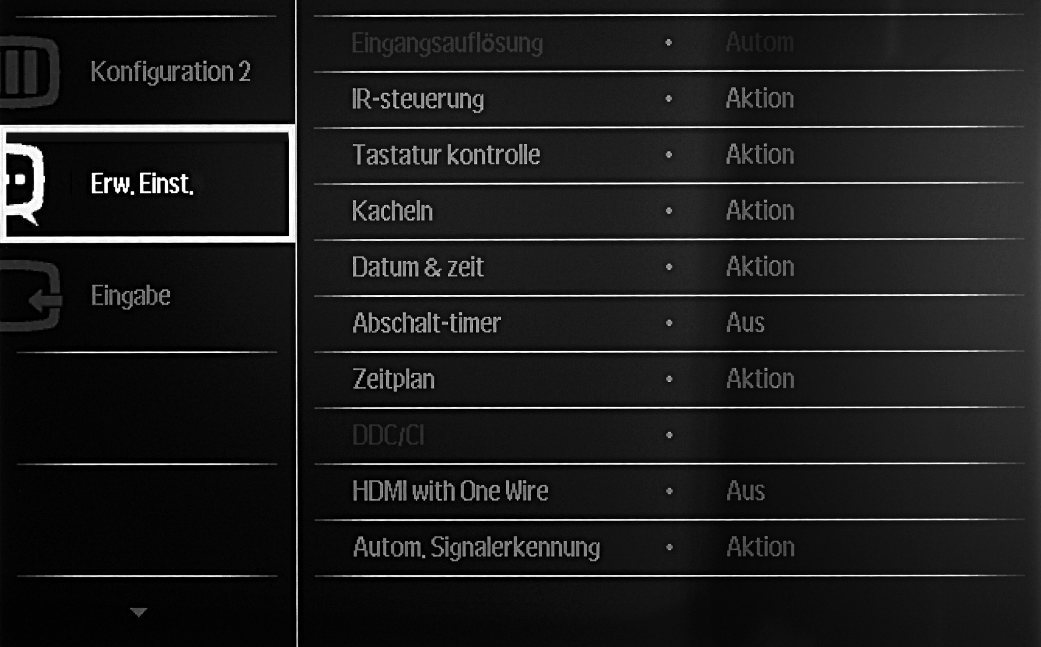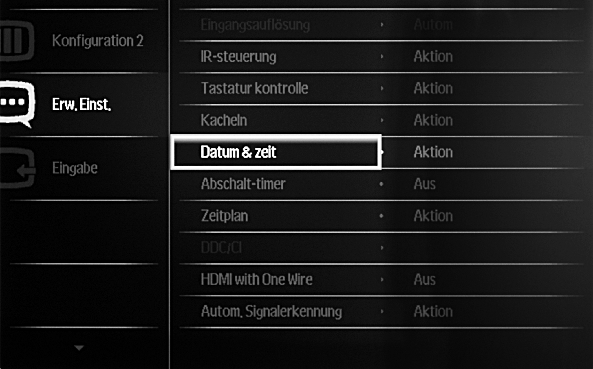 - Gehen Sie dazu mit den Pfeiltasten der Fernbedienung auf den Menüpunkt → Konfiguration 2.