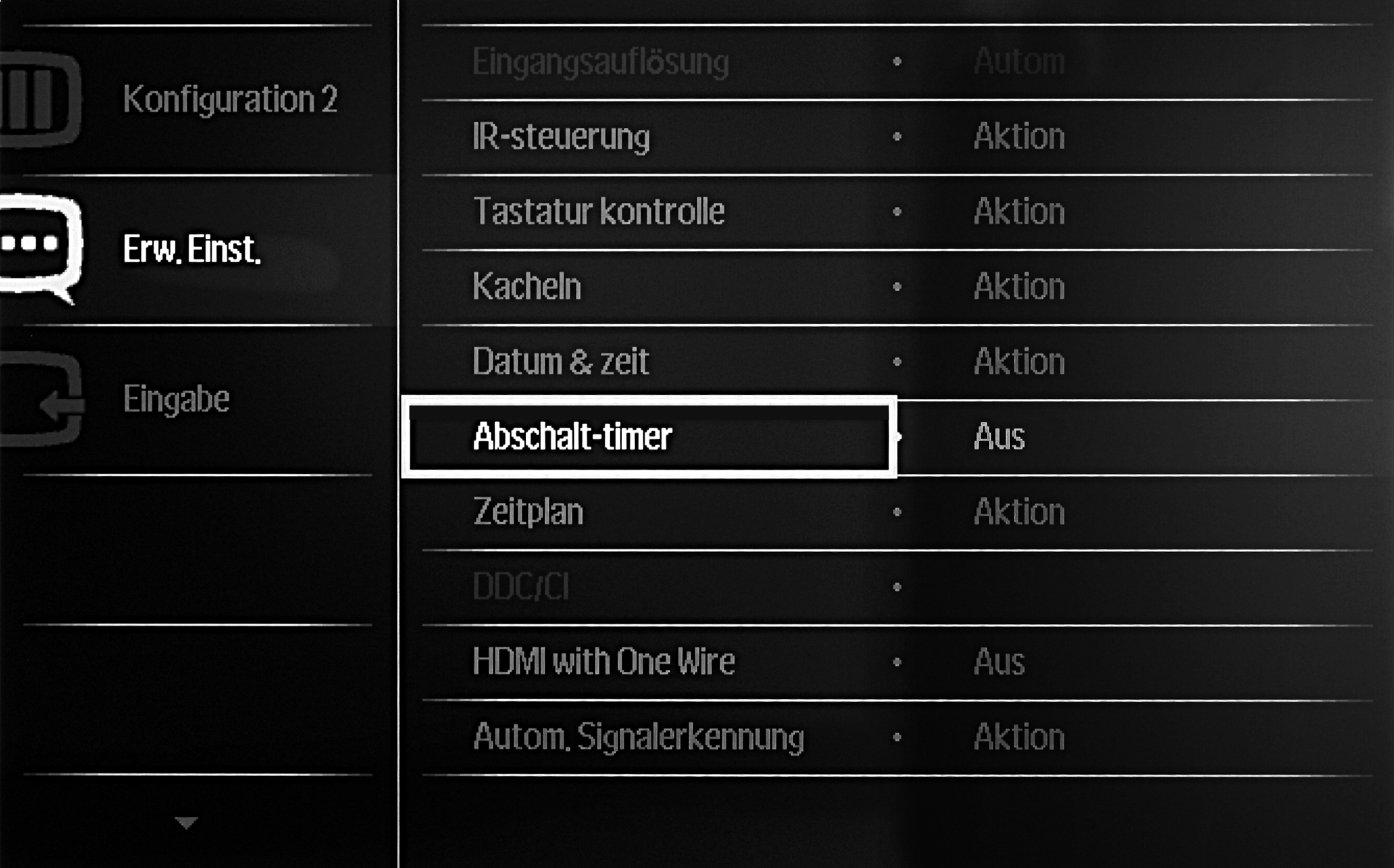 → Abschalt-timer. - Drücken Sie die Ok-Taste auf der Fernbedienung des Gerätes um zu den Einstellungen zu gelangen.