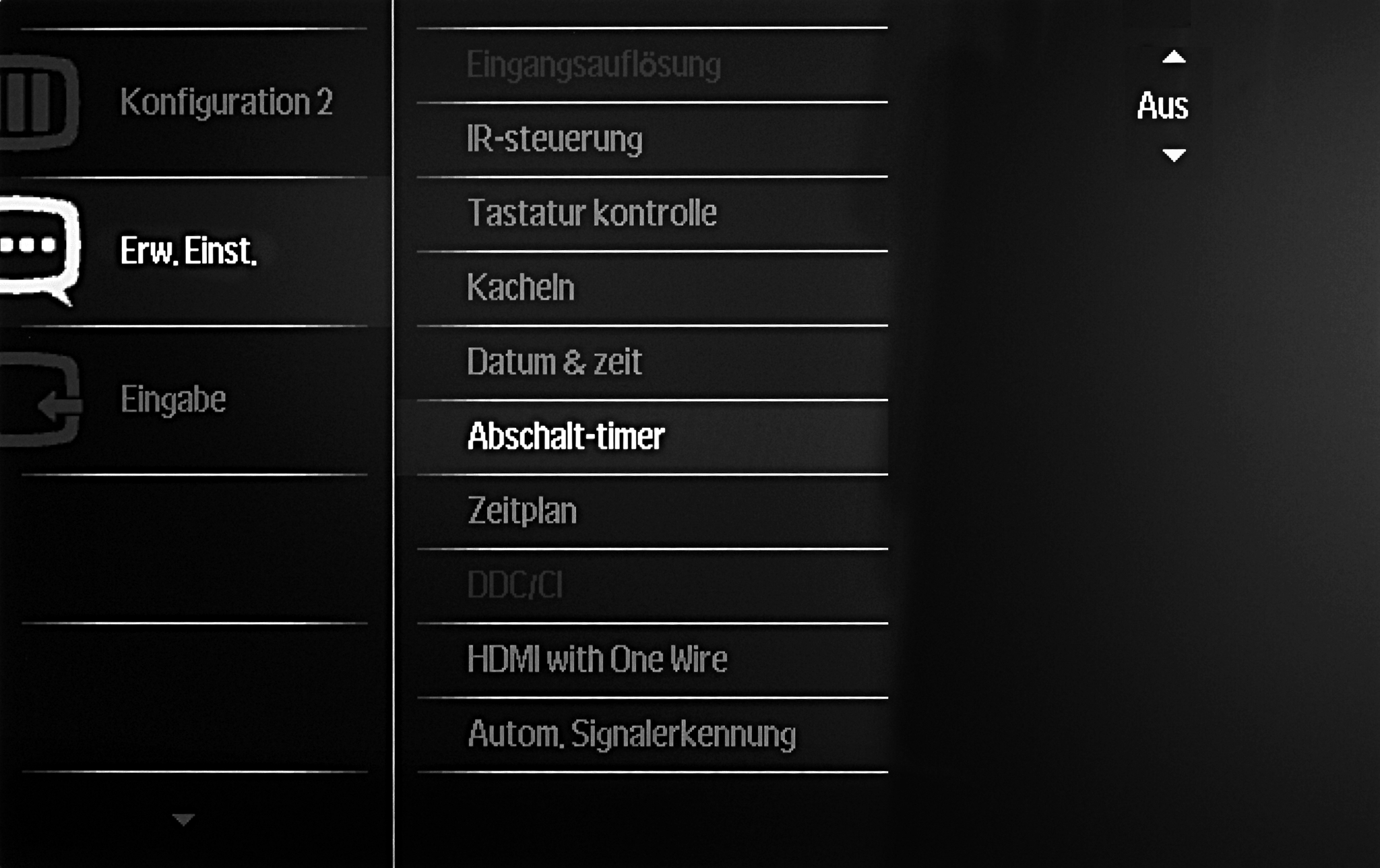 → Aus. - Drücken Sie danach die Zurück-Taste auf der Fernbedienung des Gerätes um die Einstellung zu übernehmen.