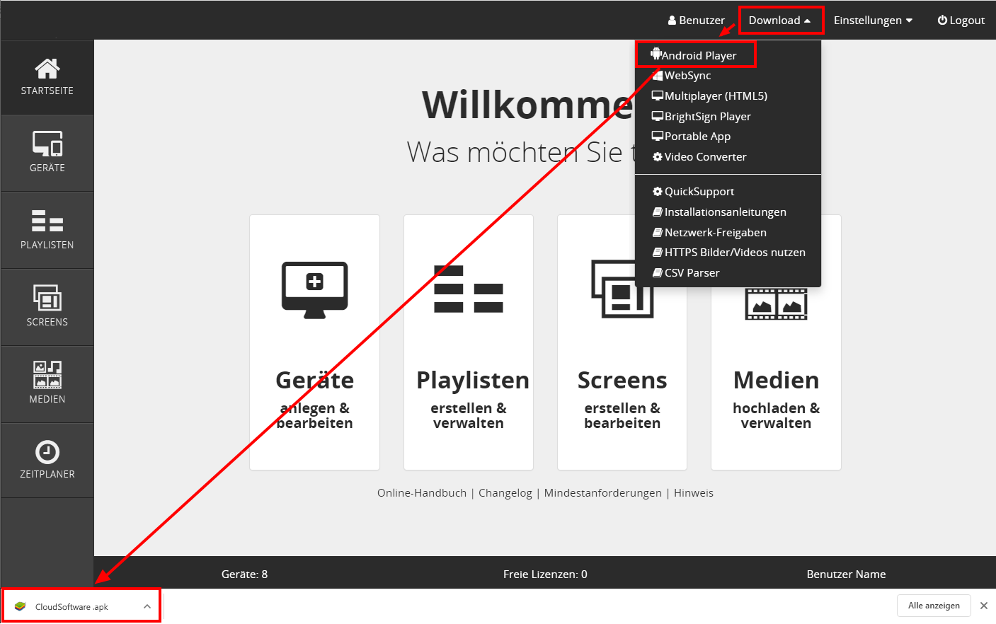 Installation der Android Player App