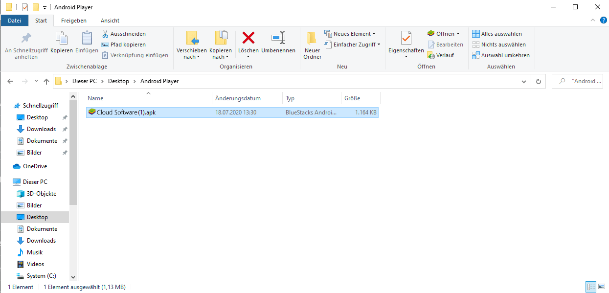 - Stecken Sie einen USB-Stick in den Anschluss Ihres PC´s und kopieren Sie die Android Player.apk auf den Stick.