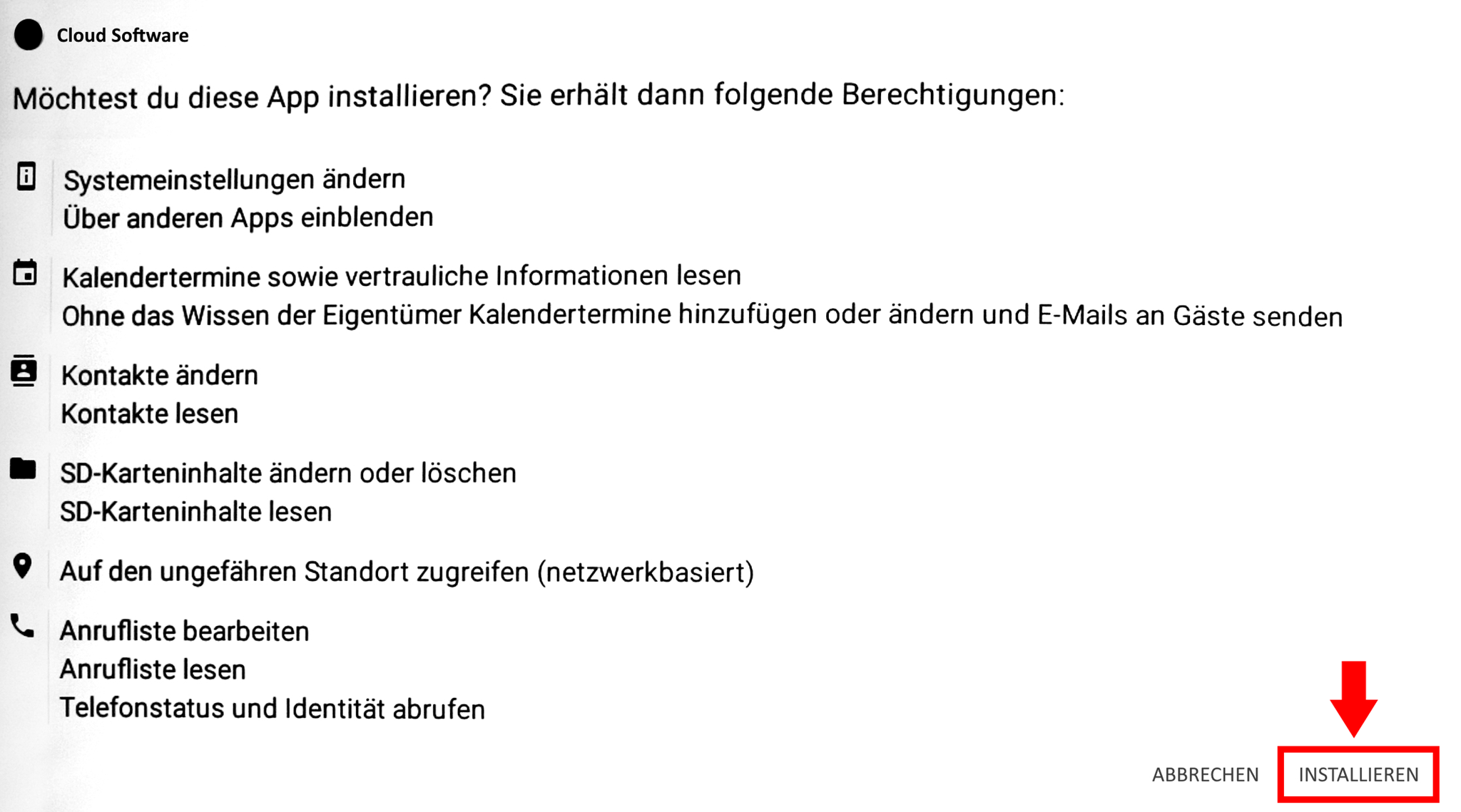 - Der Bildschirm zeigt Ihnen nun die Berechtigungen an.