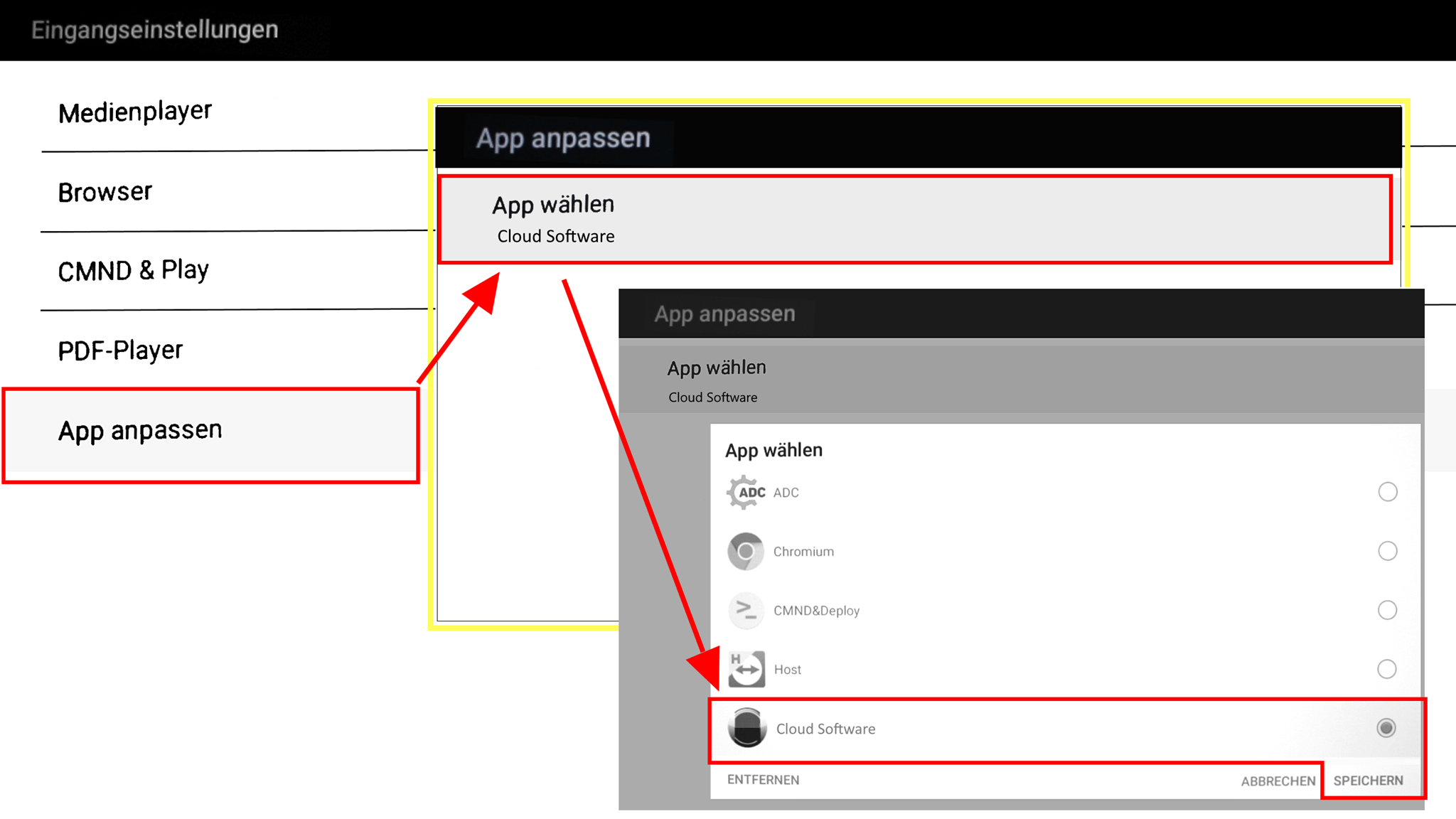 - Wählen Sie im dann geöffneten Fenster App wählen und selektieren Sie die Cloud Software App.