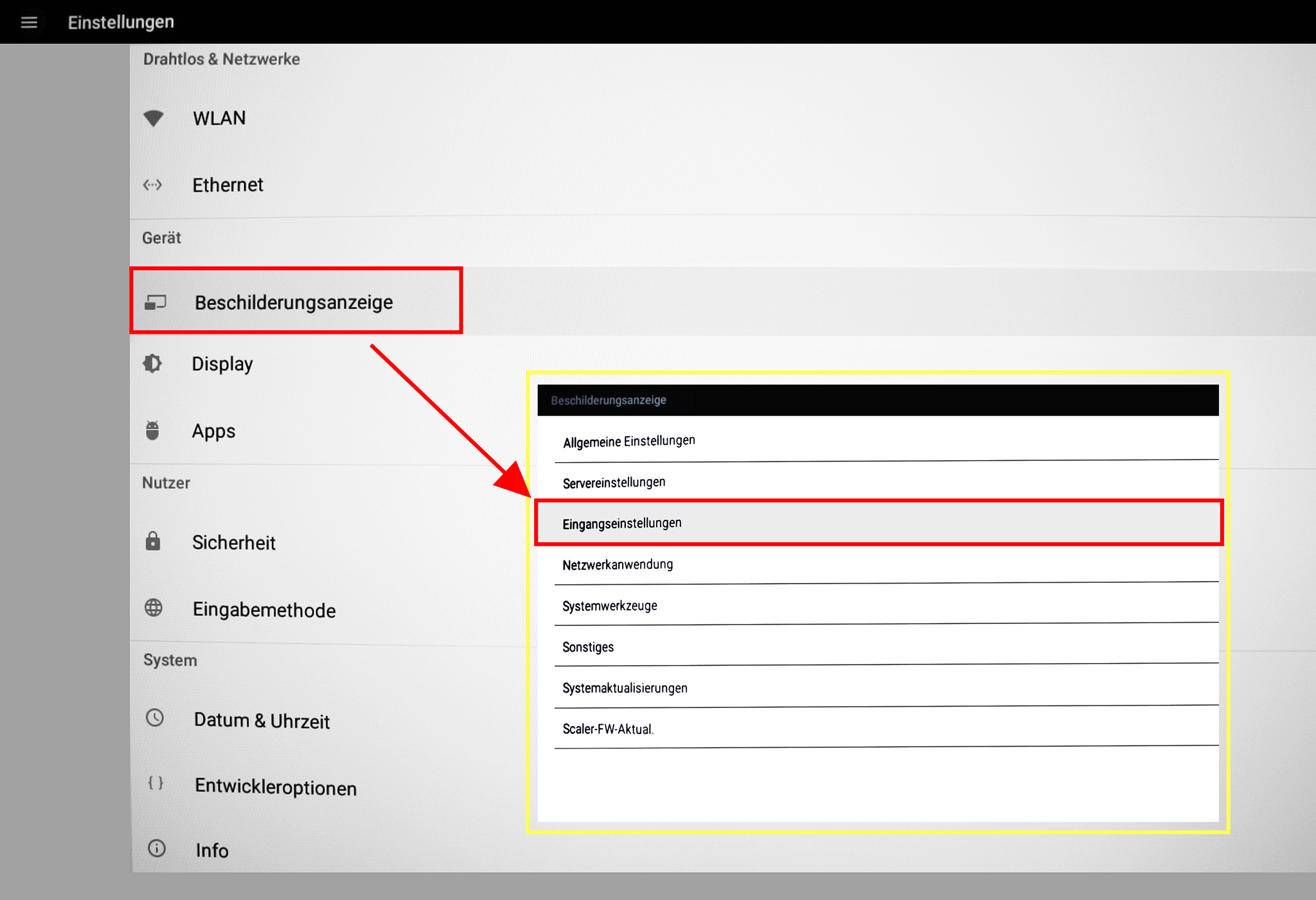 - Wählen Sie anschließend → Eingangseinstellungen.