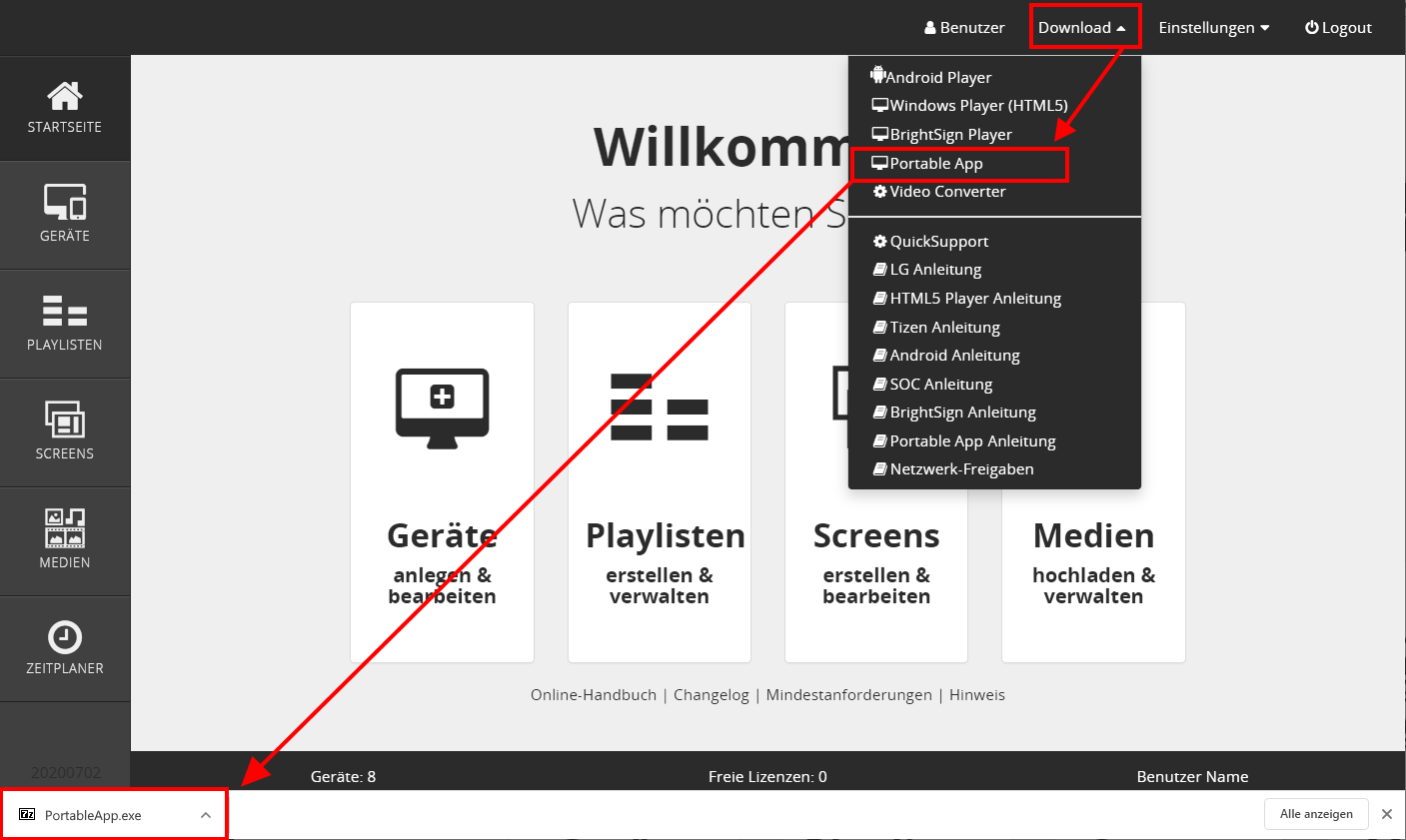 Download der Portable App vom Webportal