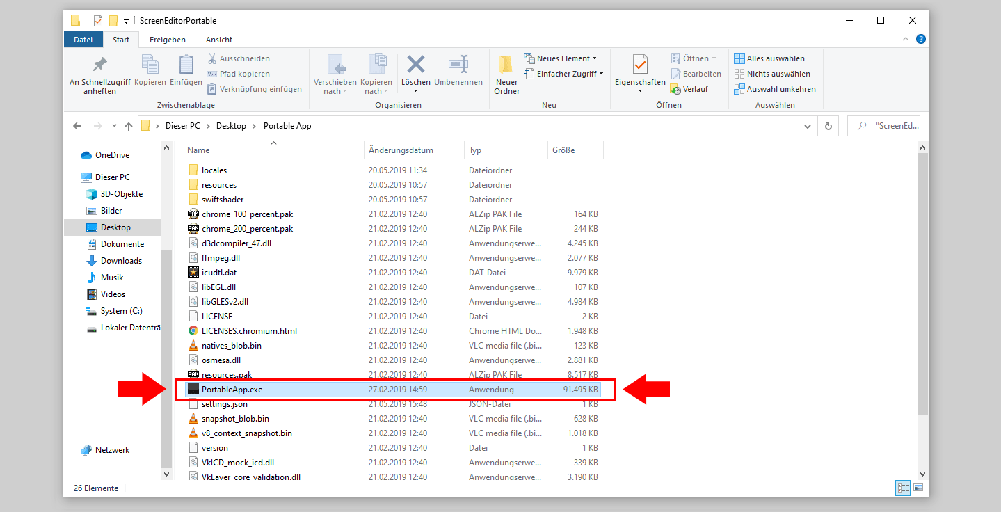 9. Starten Sie die Portable App durch Doppelklick auf die .exe Datei.