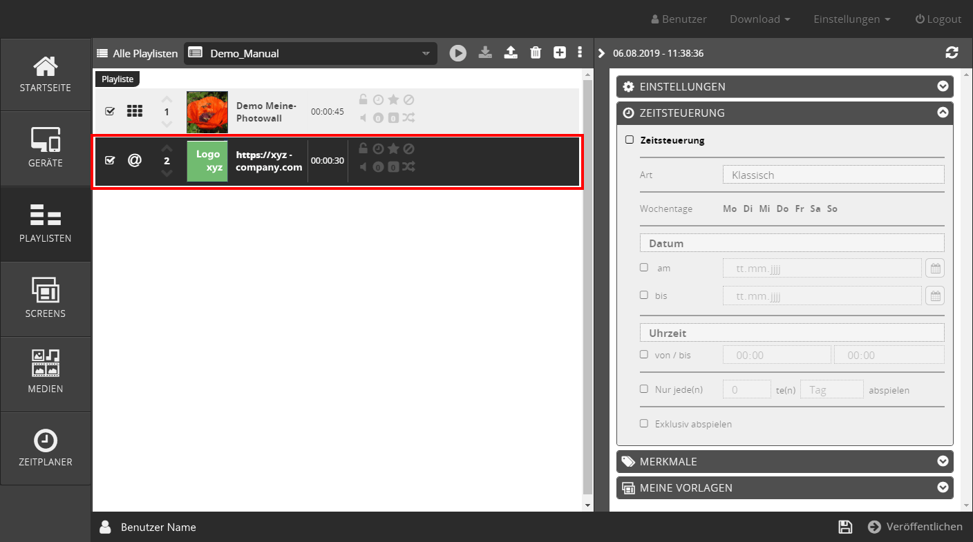- Selektieren Sie eine Playliste oder erstellen Sie eine neue Playliste.