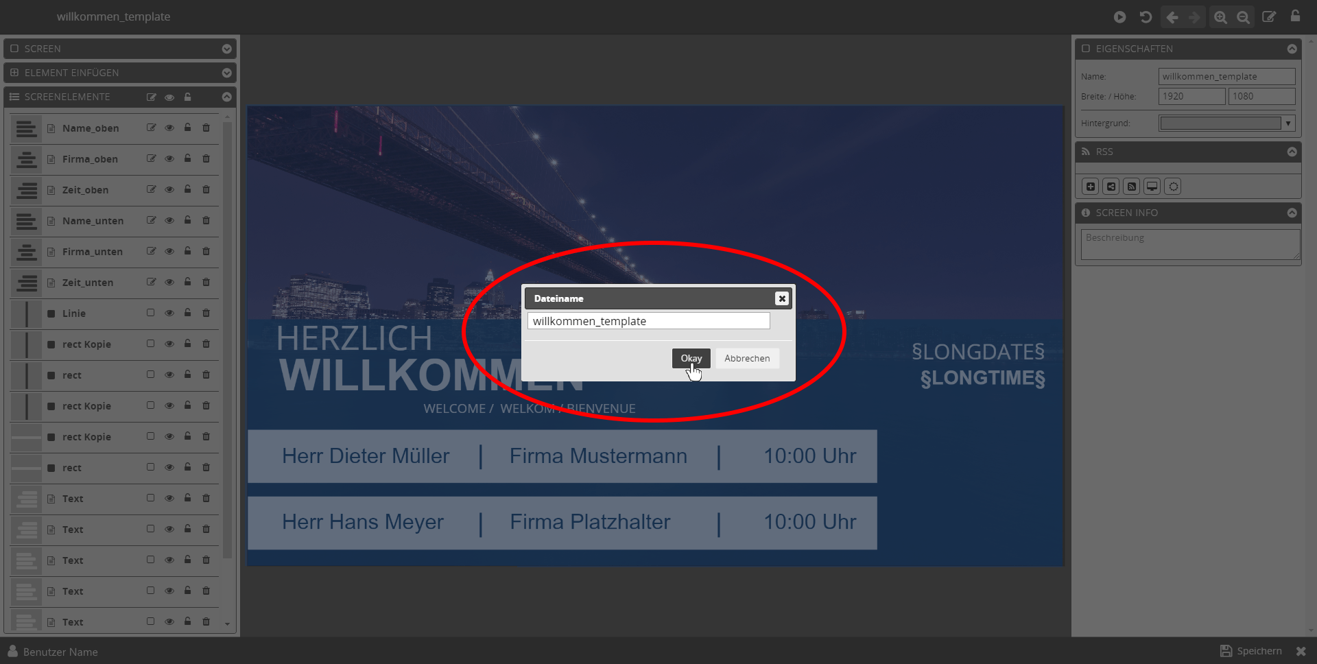 Wir empfehlen die XML dann zu erstellen, wenn Sie den Screen fertig gestellt haben. Auf diese Weise sind alle Elemente im Screen enthalten und Sie haben die Möglichkeit, in der Elementliste auf der linken Seite zu bestimmen, welche Einträge in die XML-Datei über- nommen und bearbeitet werden können.