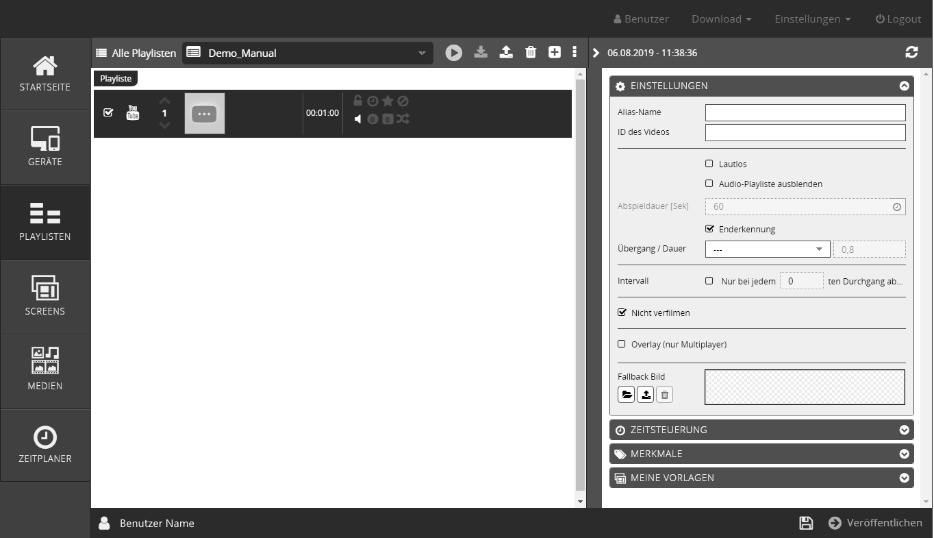 - Selektieren Sie eine Playliste oder erstellen Sie eine neue Playliste.