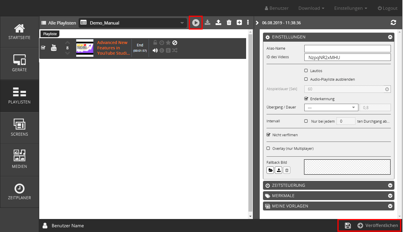 klicken Sie auf → Veröffentlichen um die Playliste zu speichern und